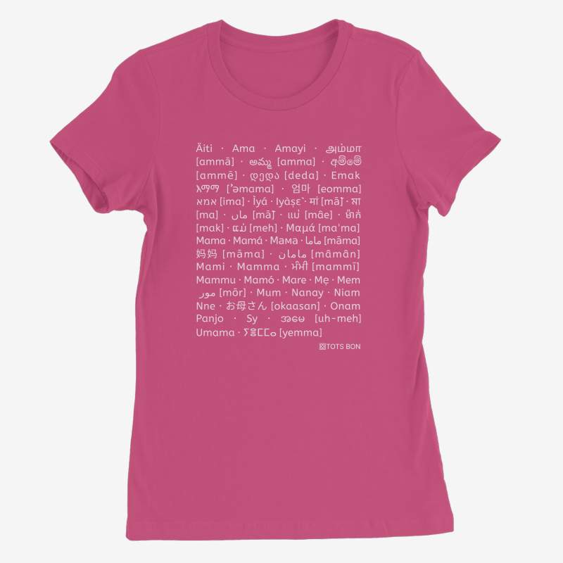 Brighten your Mum’s day with our cute and informative Multilingual “Mum” t-shirt!